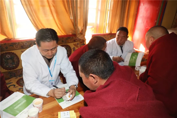 上午10點,在甘丹寺管委會幹部格桑旺堆的接待下,我院義診組專家來到甘丹寺管理委員會的會議室裡開展義診活動。僧衆聽說开云体育醫院醫生的到來,高興之至,陸續從各處趕來。